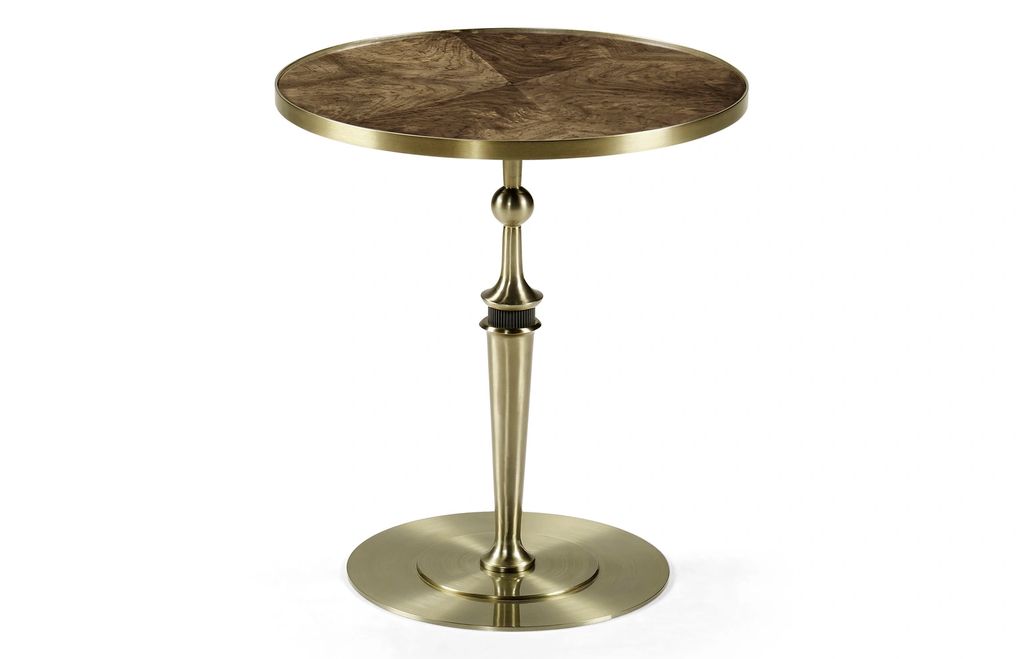 HIGH STYLE MODERN WITH WALNUT SWIRL TOP AND CHAMPAGNE PATINA STEEL